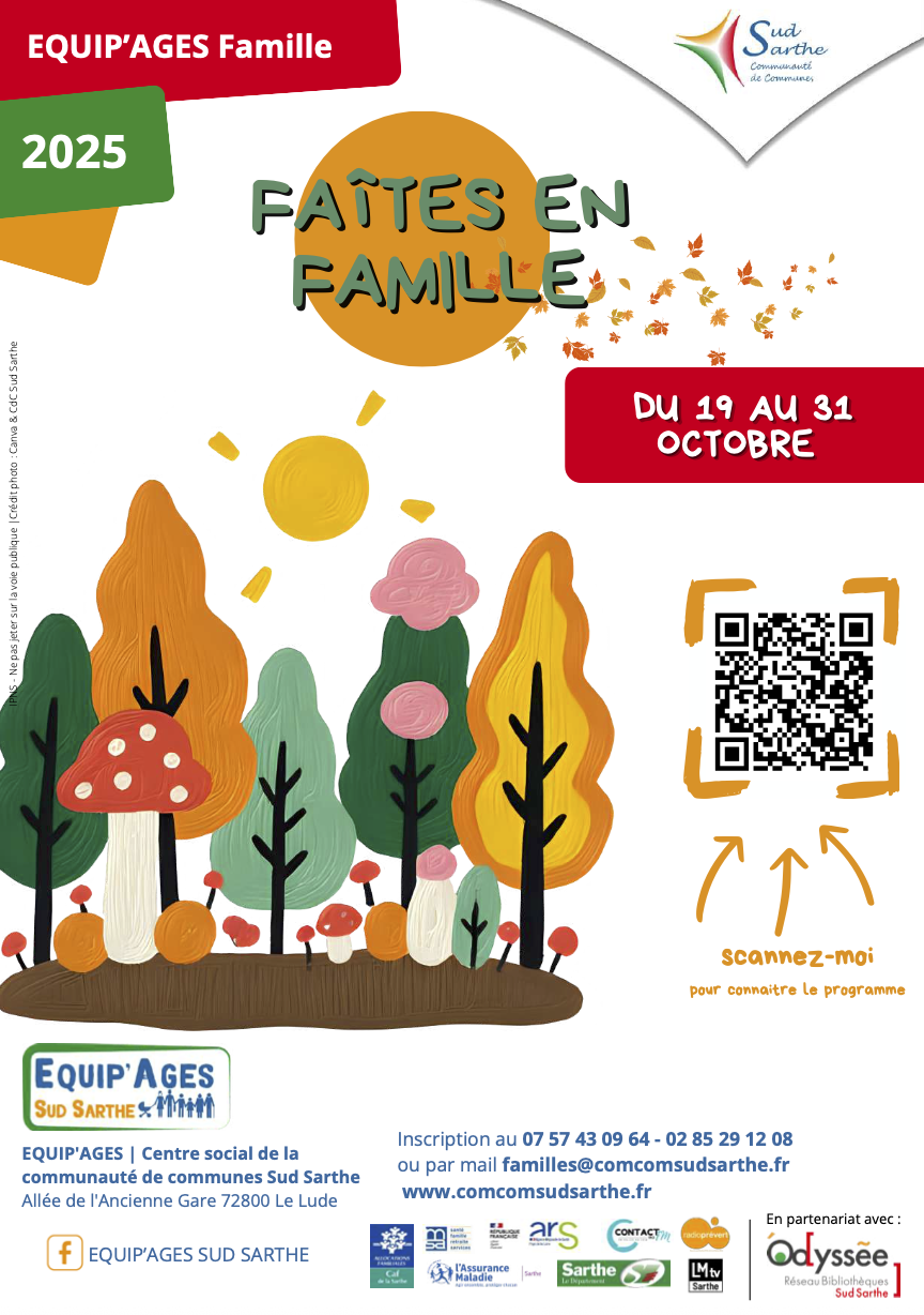 Les vacances d’automne approchent à grands pas, et nous sommes ravis de vous présenter le programme des animations proposées par la Communauté de Communes Sud Sarthe pour les familles !