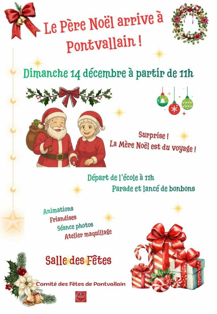 Arrivée du Père Noël – Comité des Fêtes + Ajouter à mon Agenda Google + Exporter vers iCal 00 jours 00 heures 00 minutes 00 secondes Date 14 décembre 2025 Lieu Salle des fêtes Pontvallain Catégories Animation Association Organisateur Comité des Fêtes de Pontvallain Téléphone 06 95 91 12 86 Email florence.drory@gmail.com Partagez cet événement