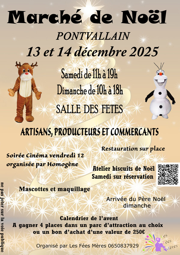 Marché de Noël – Les fées Mères + Ajouter à mon Agenda Google + Exporter vers iCal 00 jours 00 heures 00 minutes 00 secondes Date 13 décembre 2025 Heure 11 h 00 min - 19 h 00 min Lieu Salle des fêtes Pontvallain Catégories Animation Marché de Noel Organisateur Les Fées Mères Téléphone 06 50 83 79 29 Email lesfeesmeres72@hotmail.com Site Web https://www.facebook.com/LesfeesmeresPontvallain Partagez cet événement