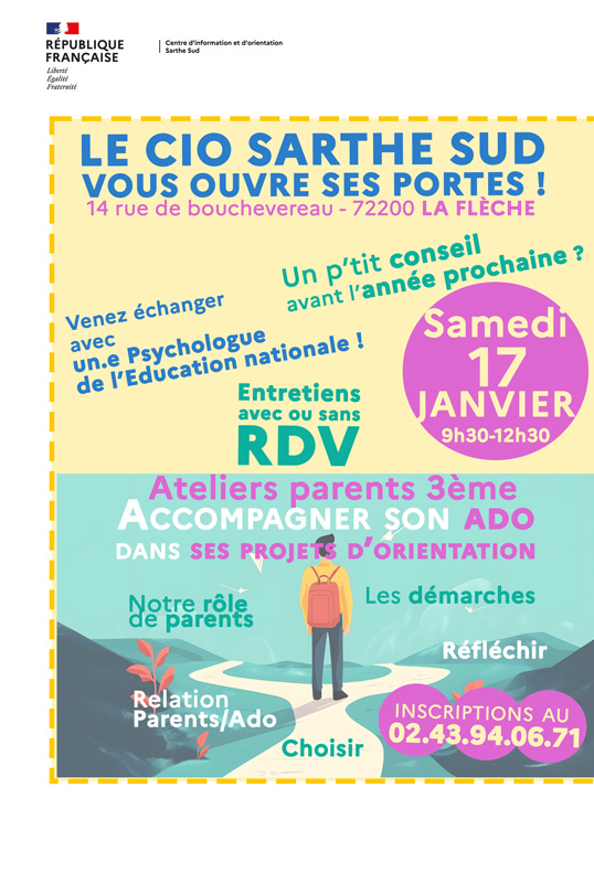 Le CIO Sarthe Sud La Flèche organise une journée portes-ouvertes, le samedi 17 janvier de 9h30 à 12h30.