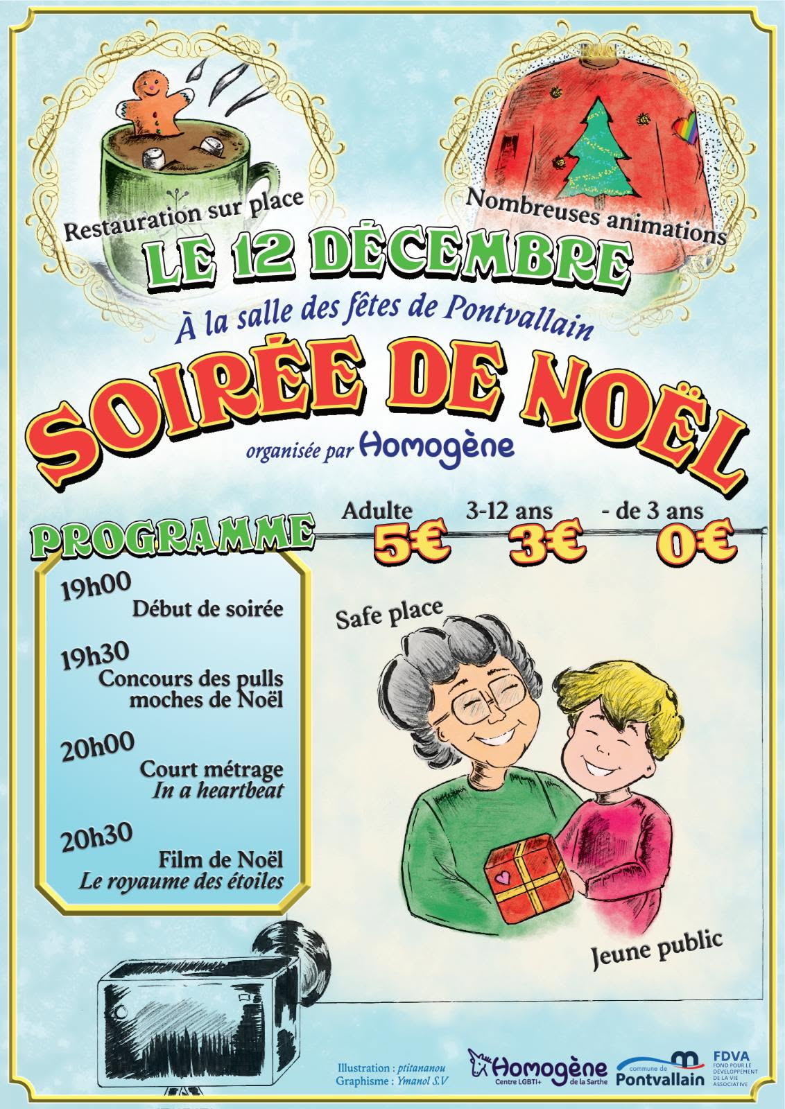 La magie de Noël s’invite à Pontvallain ! Le 12 décembre, la salle des fêtes accueillera une grande soirée de Noël organisée par l’association Homogène, avec le soutien de la commune. Cet événement, ouvert à toutes et tous, promet convivialité, animations et émerveillement pour petits et grands.
