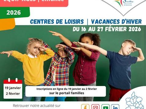 CENTRE DE LOISIRS Actualités, EQUIP'AGES Sud Sarthe, JeunessePar Mairie Administrateur21 janvier 2026 VACANCES HIVERS 2026 Read more